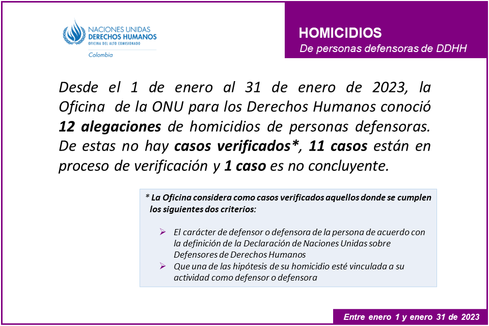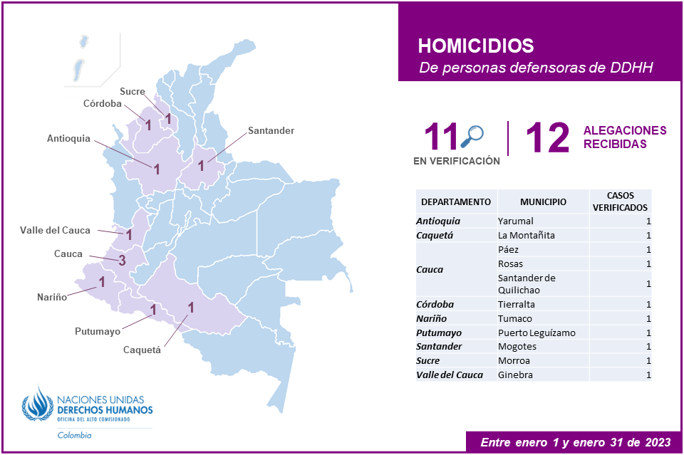 Descargar en PDF Homicidios de personas defensoras de derechos humanos enero 1 a enero 31 de 2023 Descargar documento