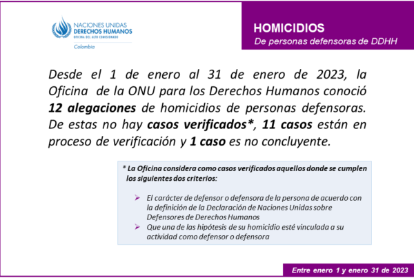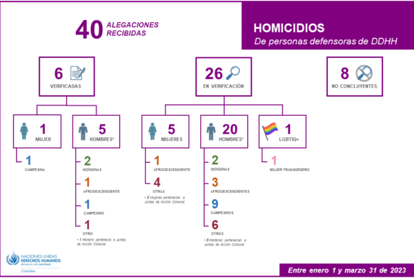 La Oficina en Colombia del Alto Comisionado de la ONU para los Derechos Humanos presenta las cifras de homicidios de personas defensoras de derechos humanos…