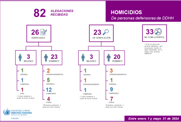 Desde el 1 de enero al 30 de junio de 2024, la Oficina de la ONU para los Derechos Humanos conoció 98 alegaciones de homicidios…